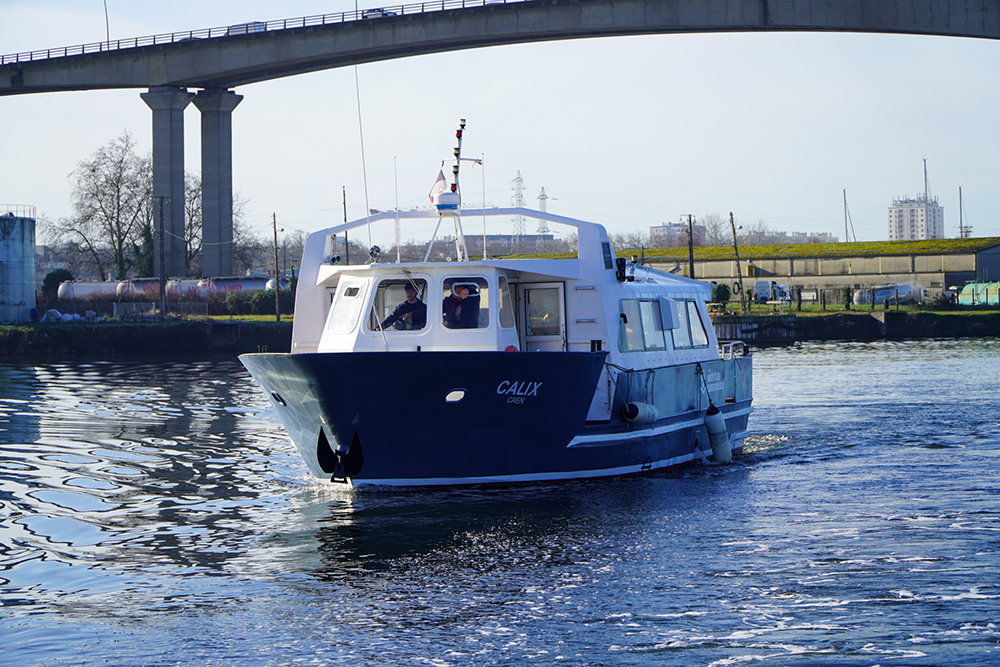 Avec ses 60 places à bord et un intérieur abrité, il s’élance désormais principalement sur les eaux calmes du canal de Caen à la mer.
